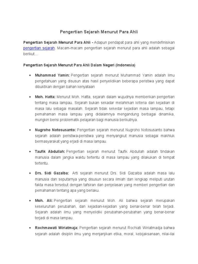 Pengertian Sejarah Menurut Para Ahli Dalam Negeri Docx