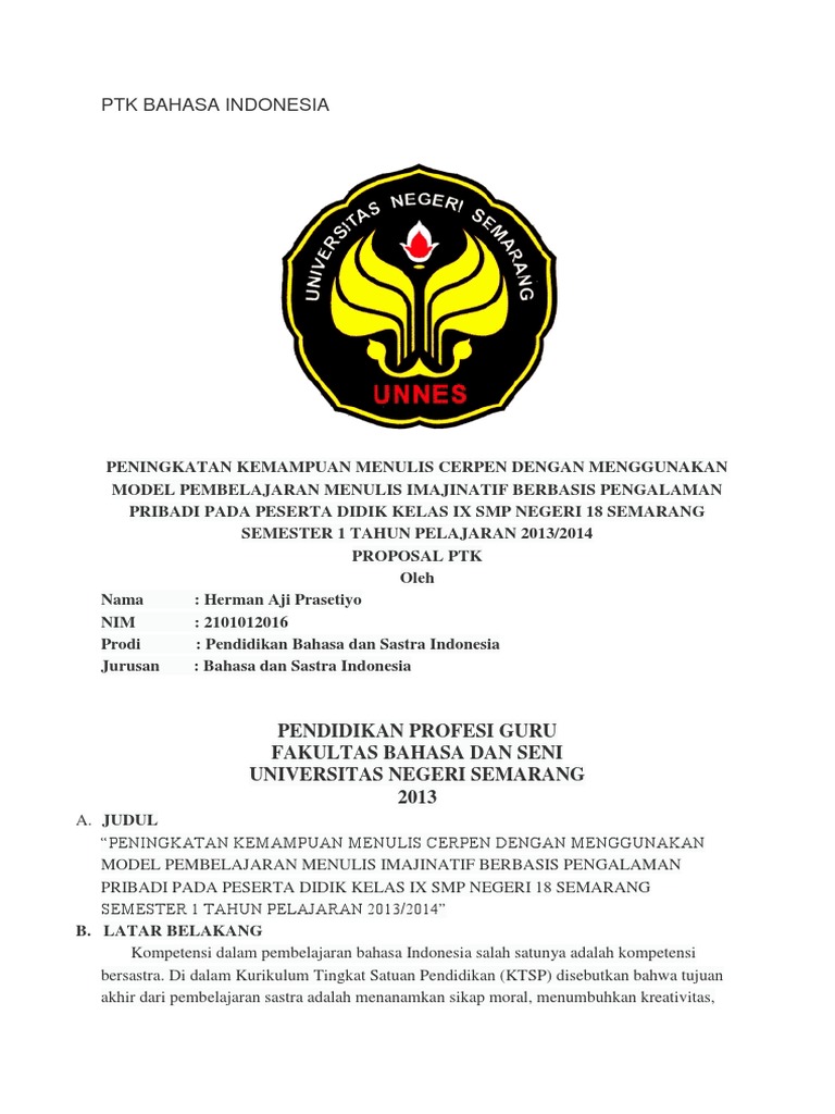 Contoh Proposal Ptk Bahasa Indonesia Kurikulum 2013 Ilmusosial Id
