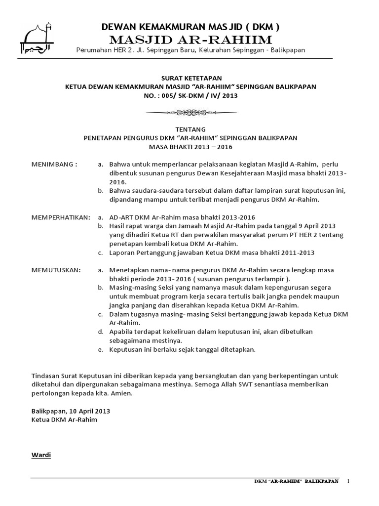 Contoh Sk Dkm Masjid Ilmusosial Id