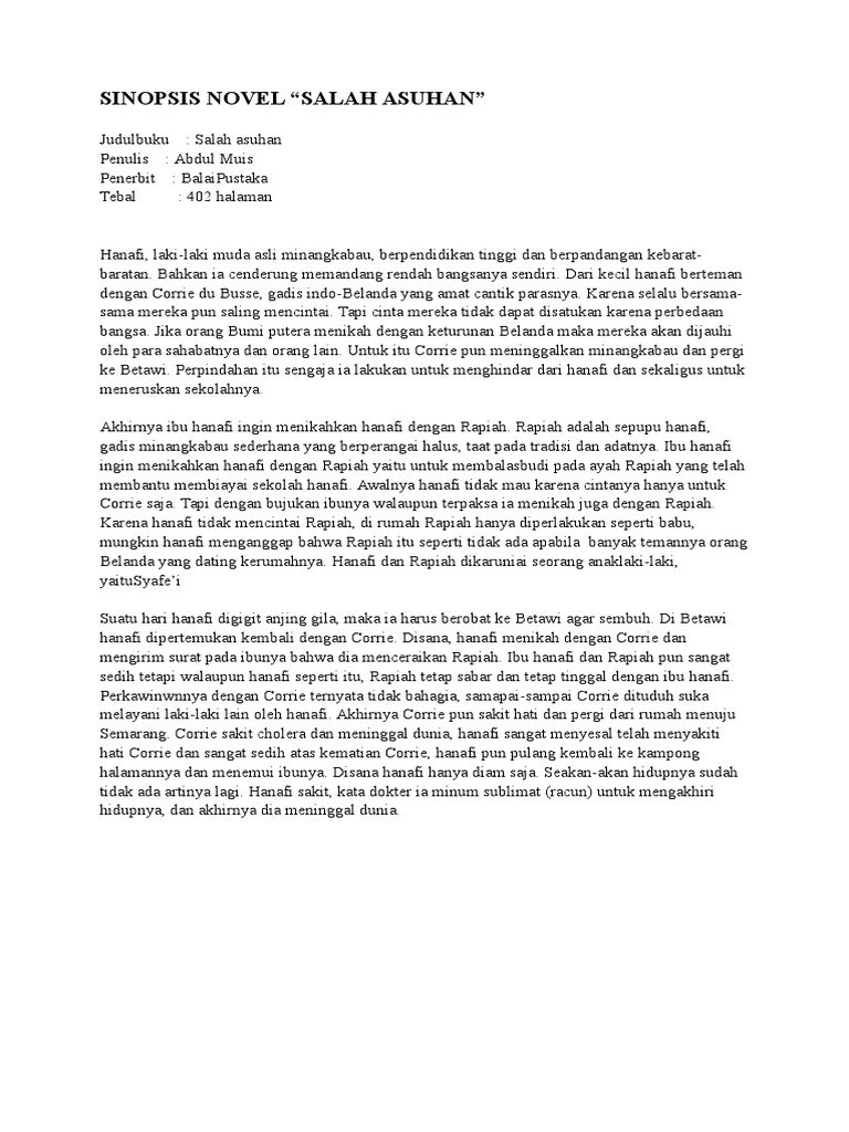 Sinopsis novel salah asuhan. Sastra Angkatan Balai Pustaka. Academiaedu is a platform for academics to share research papers. Seorang anak yang disekolahkan dan dibesarkan dalam budaya yang berbeda akan berdampak negatif baik bagi budaya yang dijalaninya maupun budaya asli tempat.