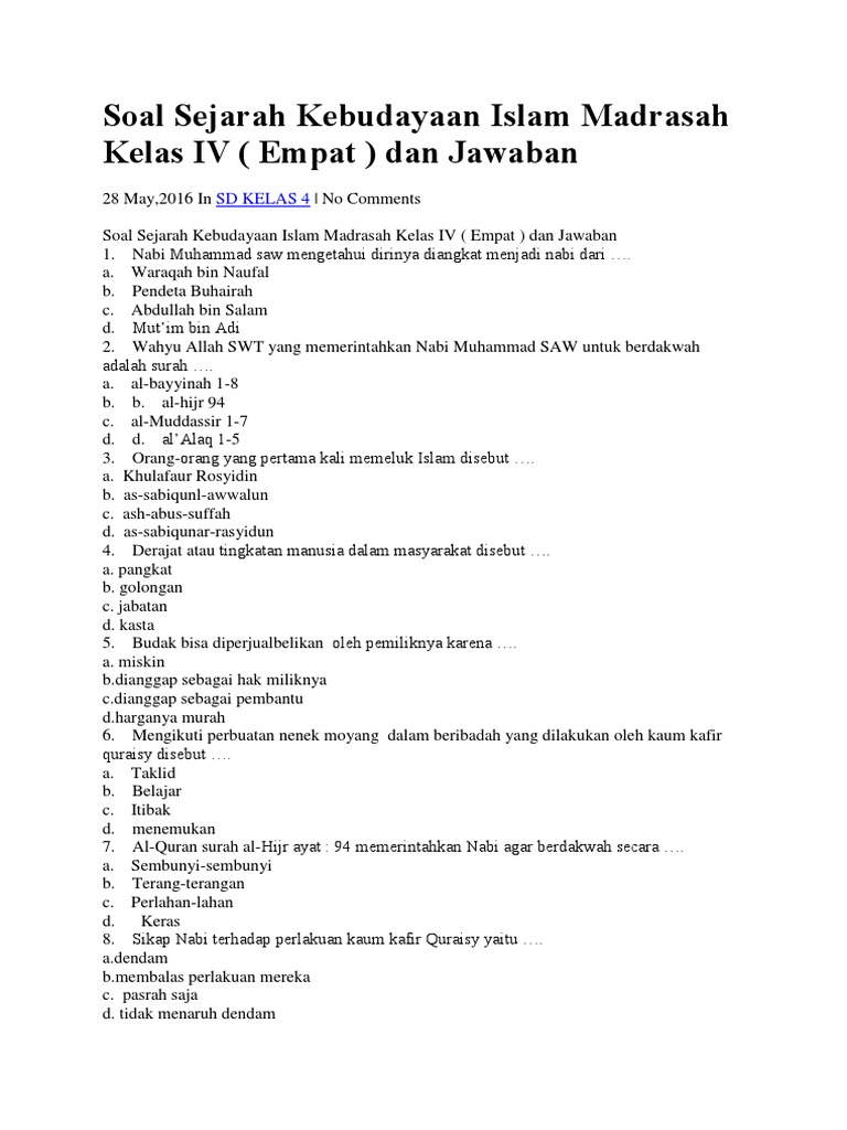 Soal Sejarah Kebudayaan Islam Madrasah Kelas Iv
